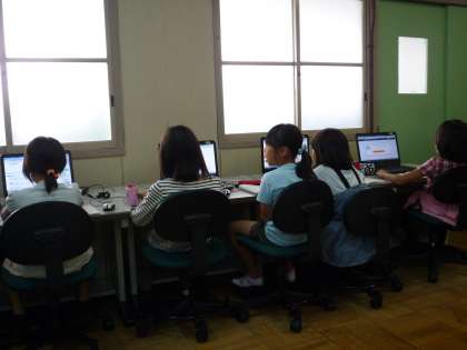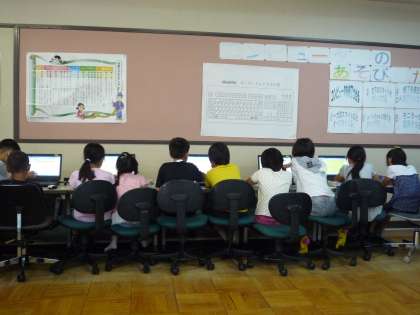 国語の学習で点字について調べています。点字はどこについているのかということを調べている人もいれば,点字を考案した人について調べている人もいます。パソコンや図書室の本を使って自分にとって必要な情報は何かを考えて取り組んでいます。