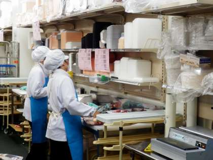 冷蔵庫・冷凍庫など品物を安全に保管するための場所や,お客さんが商品を手に取りやすいように品物を包装したり惣菜を調理したりする場所など,様々な場所や仕事がありました。