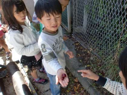 ドングリや柿,バッタ・ダンゴムシなどを見つけて
