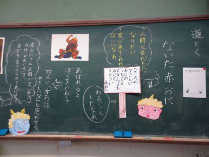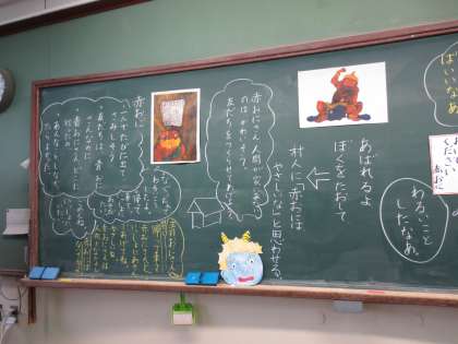 人権の参加日には,2年生は道徳で「ないた赤おに」