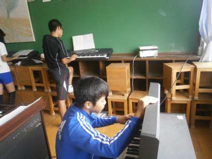 音楽フェスティバルにむけて楽器を練習しています。