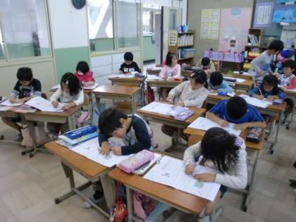 書き順や形に気を付けて,ていねいに書いています。
