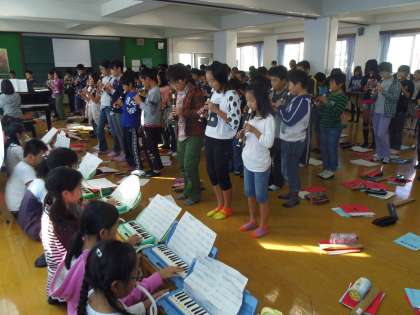 1回学年で音楽フェスティバルの曲を合わせました!