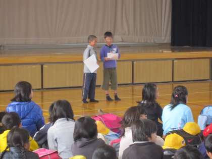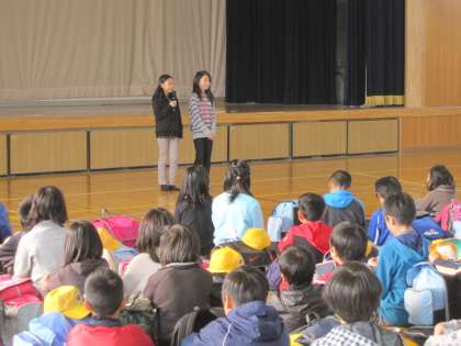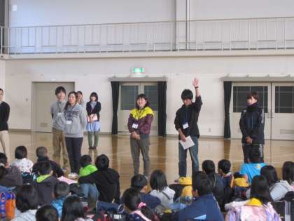 体育館で出発式を行いました。みんなで協力して楽しい5日間にしていきます。多数の学生ボランティアも参加してくれます。