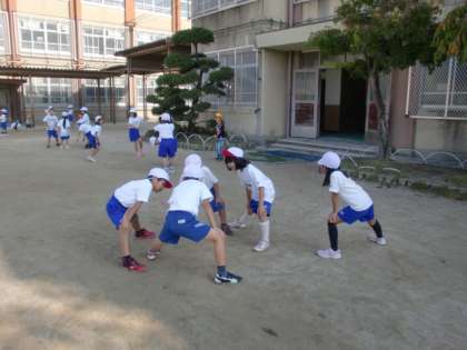 チームで準備体操をしたり作戦を立てたり挨拶をしたり・・・