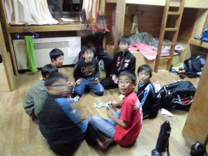 今日の「ふりかえり」も終わり,部屋で楽しくすごしています☆また,リーダー会議やキャンプファイヤーの打合せ,寝る用意,キラリ,などリフレッシュもしています♪