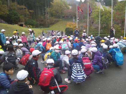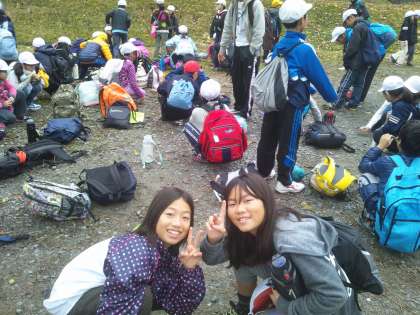 さあ,これからハイキング(登山)に出発します。途中まではバスでの移動です。みんなで励まし合いながら,登っていきます。