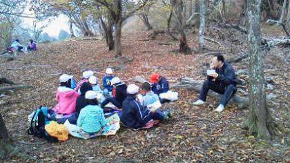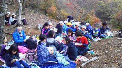 お弁当を食べているところです。頂上からは,花背峠の鉄塔も見えます。お天気は大丈夫なようです。