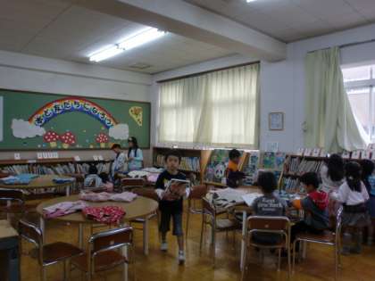 お気に入りの本を見つけると大事そうに本ポケットに入れていました。