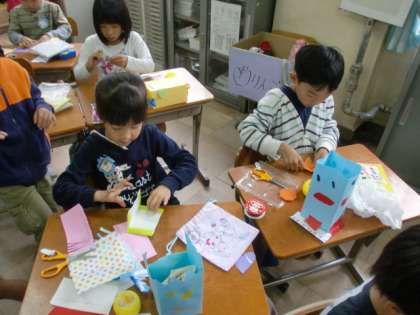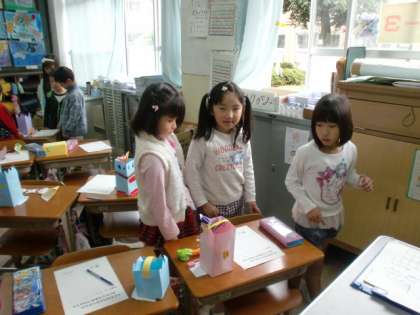 できた作品は友達と見せ合いっこして「よいところ」を見つけて