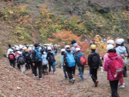 交流の森ハイキングから帰ってきました!頂上ではキレイな景色を見てから下山しました!下山もみんなと協力し,声をかけあいながら下りました!また,心配された天候もハイキング中は大丈夫でしたが,山の家に着いたとたんに雨が降りだしました。