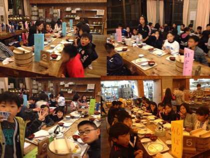 最後の夕食です。思い出に浸りながら,味わって食べています。たくさんの活動をしているので,食べている量も増えているのではないでしょうか。プクプクプクとなっているかな?