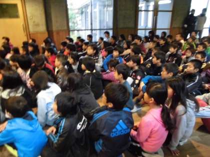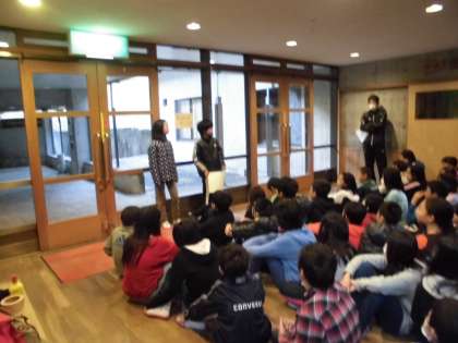 朝の集いの様子です。今日のめあては「感謝」。お世話になった方々や仲間に感謝し,山の家での活動を締めくくりましょう!