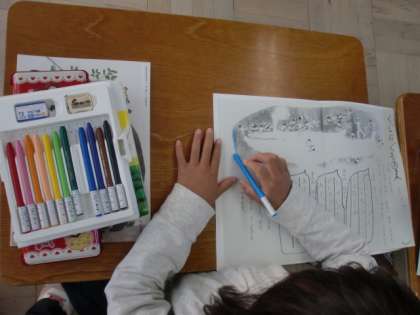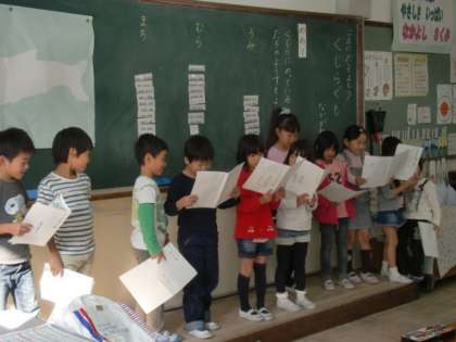 空から見える景色を吹き出しに書いてみんなに紹介しています。