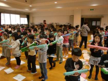 歌に合わせて鍵盤ハーモニカの演奏や楽器の演奏も挑戦。