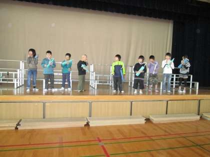 今日の体育館練習では,鍵盤ハーモニカの美しい音色が響き渡っていました。