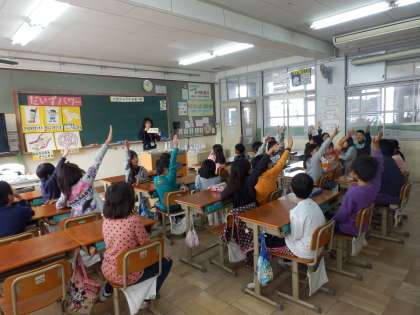 大豆が豆腐や納豆,みそやしょうゆなどに生まれ変わっていることは教科書で学習しましたが,それ以外にも「大豆油」や「豆乳」「おから」など,大豆の変身した姿を学ぶことができ,子どもたちは驚きながら楽しそうに学習していました。