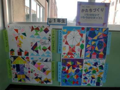 作品のいくつかを2階の渡り廊下に掲示しています。
