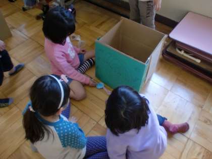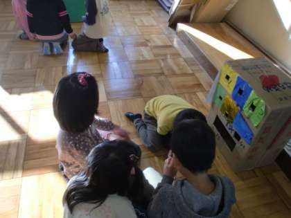 見つけた秋を使って遊びを作り,今日はみんなで遊びました。