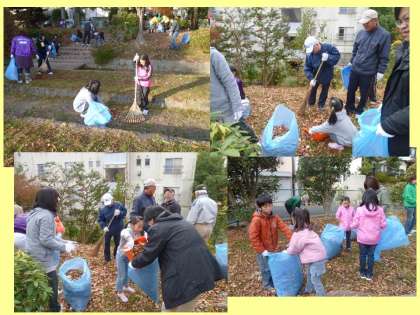 12月8日(日)午前8時より,樫原自治連合会主催で,史跡公園の清掃活動が行われました。樫原小学校からもボランティアで,児童・教職員・PTAが参加しました。夏には草刈りをしたのですが,今回は落ち葉ひろいをしました。