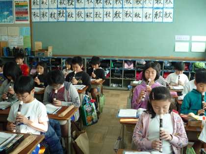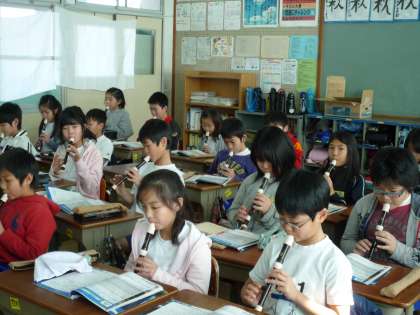 音楽の学習でリコーダーのテストをしました!「ファの♯が難しい…」と言いながらも,息を合わせて上・下パートに分かれて吹きました!!なめらかなメロディが聴いていて心地よかったです!