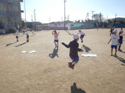 縄跳びは,前跳び,駆け足とび,片足とびに挑戦です。