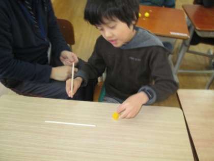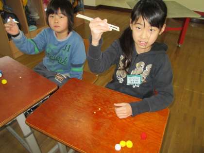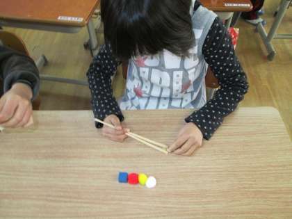 最初はおはしの持ち方をみんなで確かめました。