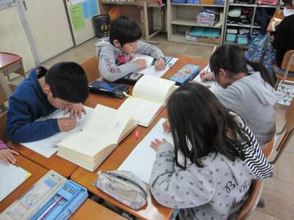 今日は,それぞれテーマを決めて,そのテーマに合ったお気に入りの詩を詩集から探しました。