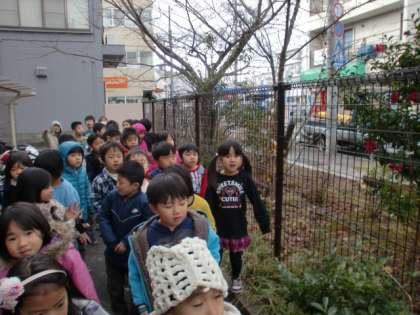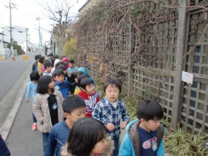 「柿が無くなってる!」「木に葉っぱが1枚も無い!」「赤いきれいな花が咲いているよ。」「こっちには,つぼみがあるで。冬に咲く花かな?なんていう花かな。調べてみる!」などと見つけたことを話しながら探検していました。