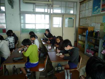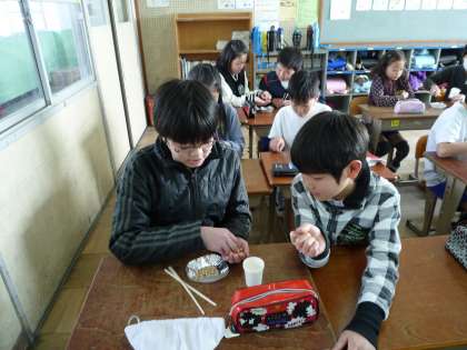 その話の中の1つで,正しいお箸の持ち方を説明し今一度持ち方を確認しました。そのあとで,みんなで豆つかみゲームをしました!30秒間で何個つまめるか!楽しみながら正しいお箸の持ち方もできるようになりました!来週には,給食週間で大会もあります!この調子で優勝目指しましょう☆