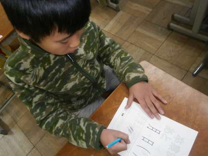 何回も書き直した作文を清書します。