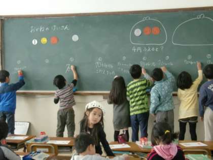 お金の模型を使って計算の練習をしました。