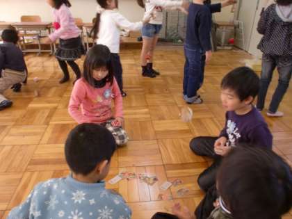 竹返し,お手玉,けん玉,めんこの中から自分がやってみたい遊びに挑戦しました。