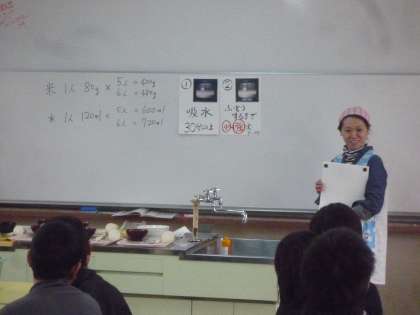 家庭科の調理実習でご飯を炊いてみそ汁を作りました。