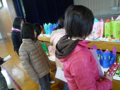 図工展を見に行きました!他の学年のお友達が作った作品や絵を見て「上手やなぁ」と自然と言葉がこぼれていました。「色の混ざり方が素敵!」「今にも動き出しそう!」「細かい毛までかいてある」「遠近法や!」と鑑賞の言葉も充実したものでした。友達の作品からいい刺激をもらいました☆