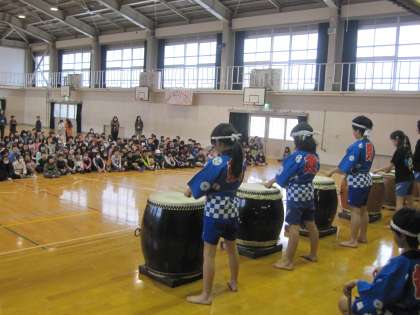 今日の昼休み,和太鼓部のコンサートが体育館で行われました。「屋台」など4曲を披露してくれました。たくさんの児童の前で,かっこいい姿を見せてくれました。