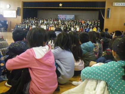 6年生を送る会で,3年生からは「はしる しるしる」の詩と「歌は すばらしい」の二部合唱をお世話になった6年生へ,感謝の気持ちをこめてプレゼントしました。