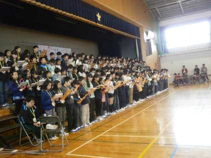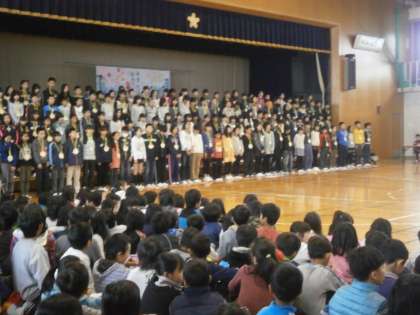 そして,お返しの歌として,児童会メンバーが考えて替え歌をみんなで歌いました。