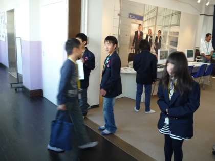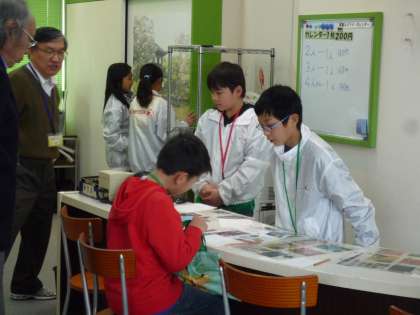 スチューデントシティ学習では,このようにブースの前で自分のお店のアピールを呼びかけたりブースの奥で会計担当の人が給与の計算をしたり,それぞれの仕事に責任をもって一生懸命取り組んでいました。