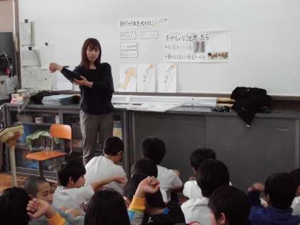 6年生の最後の身体測定で「自分の体を大切に」というメッセージをこめて,スポーツ障害について話をしました。グッと身長がのびるこの時期は,成長する骨に筋肉が引っ張られている状態で,スポーツ障害がおこりやすくなっています。中学へ行ってクラブを本格的にはじめる子,また急激に身長がのびる子が,自分の体に不調を感じた時に自分で自分の体の様子を知る手立てや予防方法について話をしました。真剣に話を聞く子どもたちの様子から6年間の成長が感じられました。
