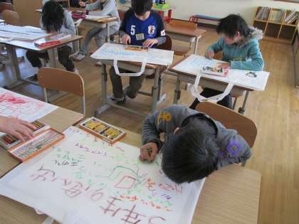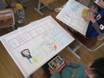 図工の作品を持ち帰る袋に絵を描いたりしました。