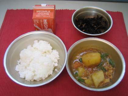 今日の給食は,ごはん・鶏肉と野菜の煮つけ・ひじきの煮つけ・牛乳でした。