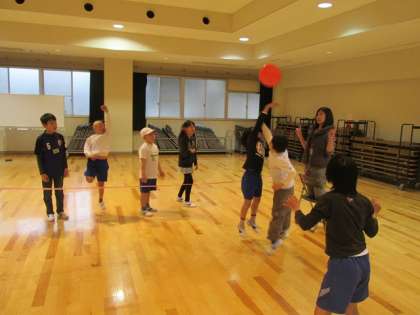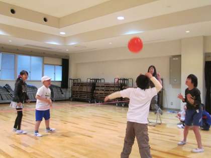 チームで協力し合って風船が床に落ちないようにがんばりました。
