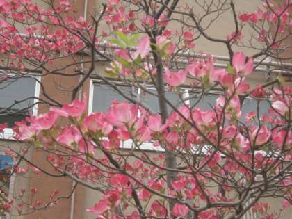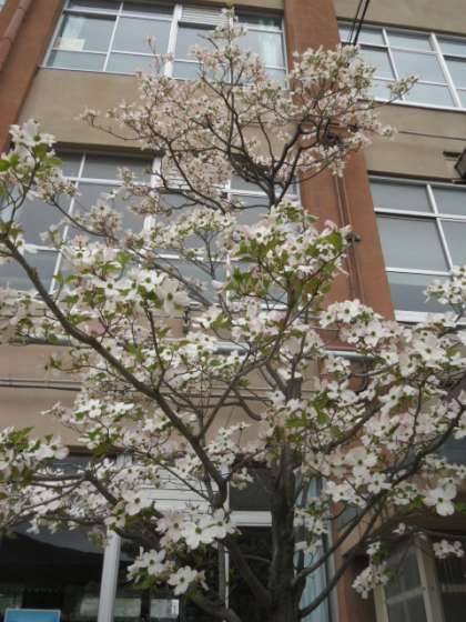 桜の季節が終わり,今中庭では,ハナミズキが満開の時を迎えています。