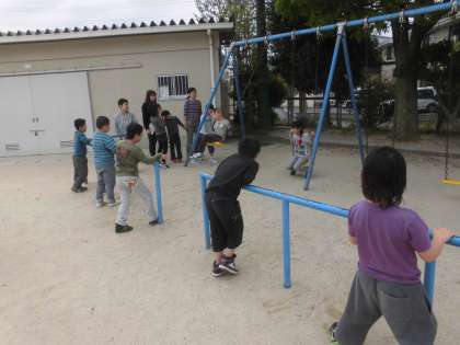 今日,ブランコで遊ぶときのルールと待ちかたを勉強しました☆