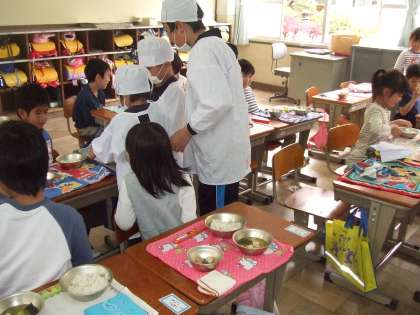 給食当番は今週のぶどうグループで1回りし,6年生が