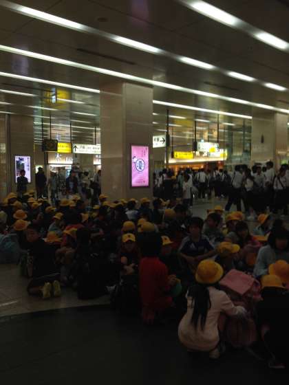 京都駅で新幹線に乗る時刻まで待っています。早く,新幹線に乗りたいなあ。