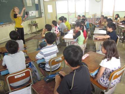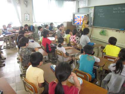 今日はALTのリンジー先生と一緒に外国語の学習をしました。初めに自己紹介をしていただきました。そのあとリンジー先生と一緒に世界の国のこんにちはについて学習をしました。初めはリンジー先生の英語に唖然とし,緊張気味だった子どもたちも,最後にはとっても笑顔で「楽しかった〜」と話していました。