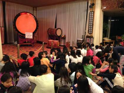 もうすぐ太鼓ショーの始まりです。まだかまだかと待っているところです。
