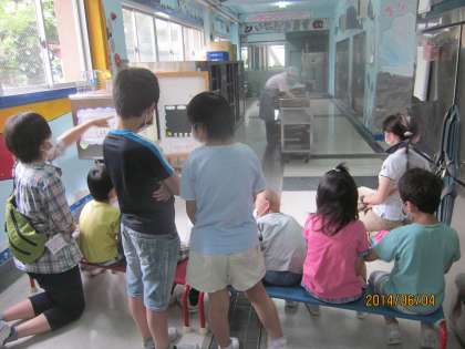 今回は、給食室でパンの仕分け作業を見学させていただきました。箱に詰められたパンは、給食室でクラスごとに分けられるのですね。クラスの人数表を見ながら作業していることもわかりました。
